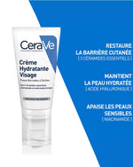La Crème Hydratante Visage de CeraVe est un soin qui hydrate les peaux normales à sèches. Cette crème à la texture légère et non grasse s'applique sur le visage et le cou pour hydrater la peau 24 heures.